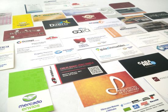 Tarjetas de presentación en diversos sistemas de impresión y acabados, offset, serigrafía, laminado, barniz o despunte.