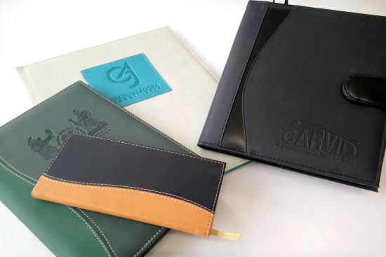 Carpetas, agendas y porta documentos de piel con grabado en láser.