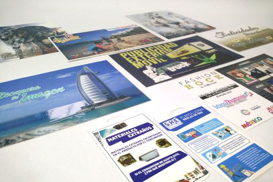 Postales y gafetes. acabados brillante, mate o barniz con relieve.